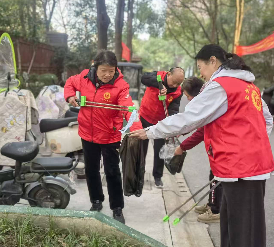 志愿行动以“短时长、高效率、广参与”为特色,聚焦小区环境痛点难点,用30分钟的集中攻坚,破解日常管理中的“关键小事”。在通和小区、香樟雅苑、时代公馆、滨湖时代广场、承寓・桐华里、绿茵居等多个项目现场,身着统一志愿马甲的参与者们分工协作、热情高涨:保洁人员细致清理绿化带枯叶、路面零星垃圾与卫生死角,拔除杂草、擦拭公共设施,让园区环境清爽整洁;安保人员与志愿者共同规整单元门口、消防通道、车棚内的非机动车,引导业主文明停放,保障道路通行顺畅;大家还重点对健身器材、儿童游乐设施等高频使用区域进行擦拭消毒,守护居民休闲安全。部分小区更结合新春氛围营造,在枝头悬挂红灯笼,让归家之路既整洁又喜庆,满溢年味。