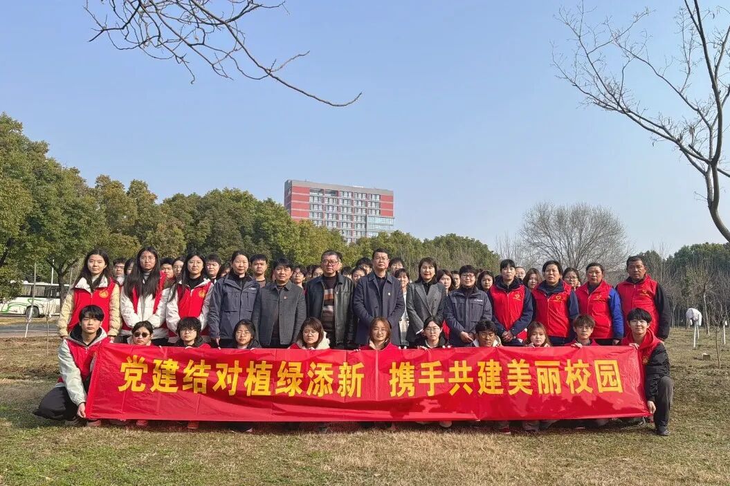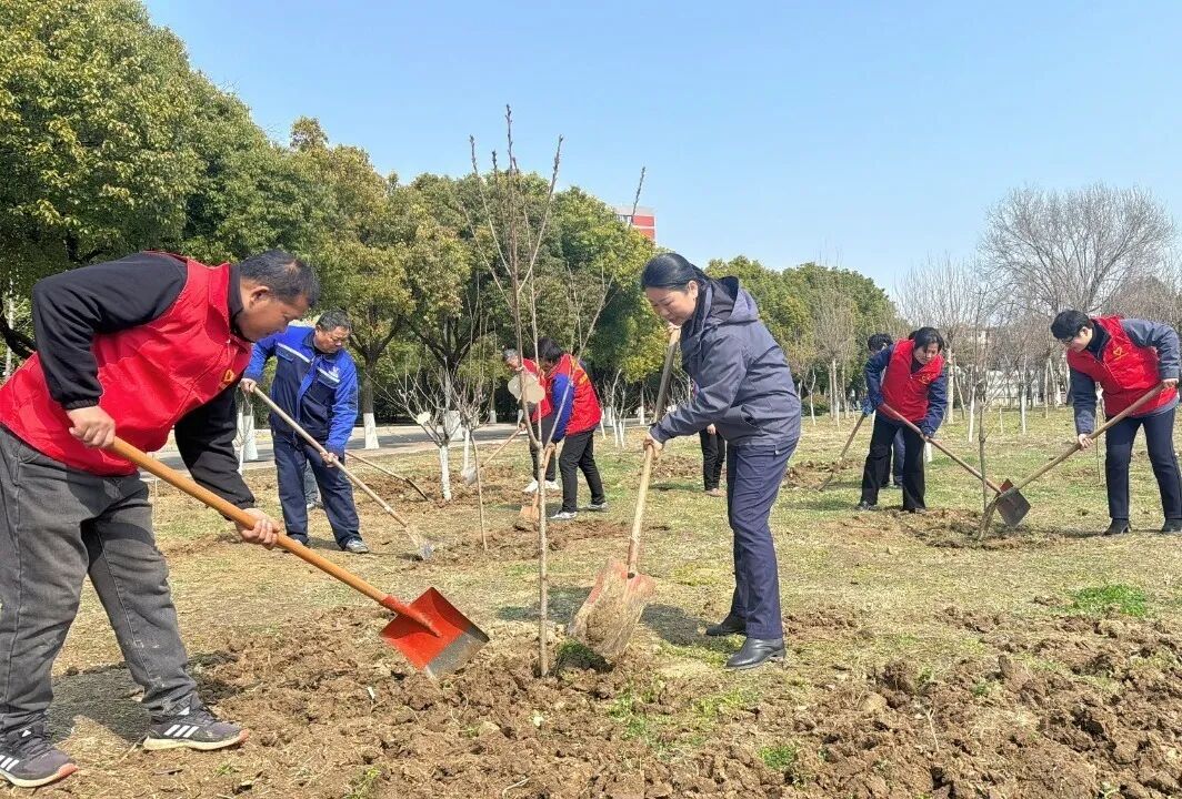 3 月 12 日,淮南师范学院后勤保障与基本建设处生活服务党支部与安徽远成物业服务集团有限公司党支部共同开展“党建结对植绿添新 携手共建美丽校园”植树节活动,学校领导、师生代表与远成物业集团董事长胡宏霞带领的志愿者们齐聚泉山校区,共赴春日之约。活动现场,绿化专员讲解苗木种植要点后,大家分组协作,挥锹挖坑、扶正苗木、培土浇水、悬挂“认养牌”……现场一派热火朝天的劳动景象。一棵棵粉色樱花苗木在春风中挺立,为校园添了一抹动人的春色。此次党建结对共建活动,不仅美化了校园环境,更推动绿色发展理念在共建共育中落地生根。